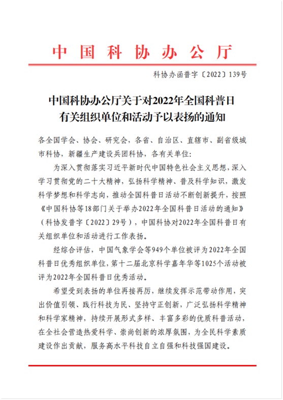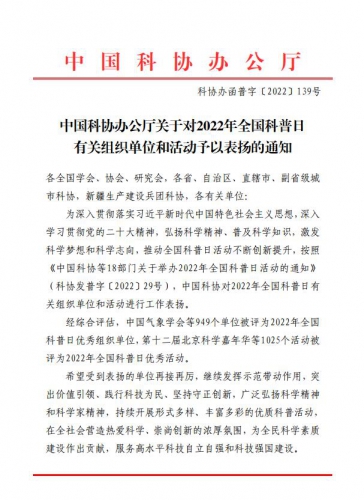中國地質學會榮獲2022年全國科普日活動優(yōu)秀組織單位