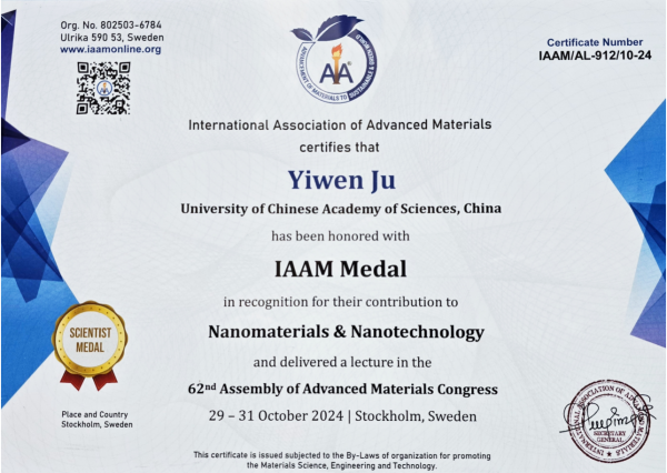 中國地質(zhì)學(xué)會納米地質(zhì)專業(yè)委員會主任委員琚宜文獲國際先進(jìn)材料協(xié)會最高獎